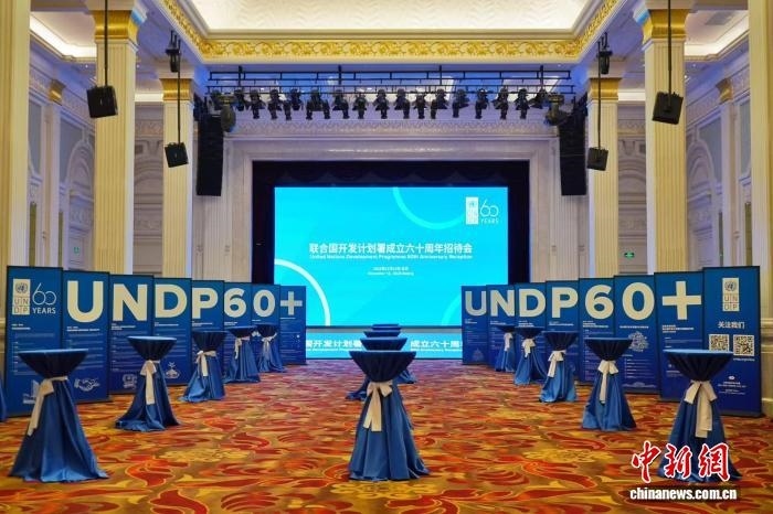 11月13日,聯(lián)合國開發(fā)計劃署在北京舉行成立60周年招待會,回顧在華合作歷程,重申將繼續(xù)深化合作,攜手推動可持續(xù)發(fā)展。圖為招待會現(xiàn)場。(UNDP供圖)