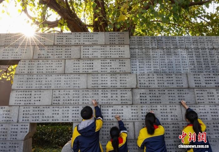 中新社南京11月30日電 (記者 朱曉穎)南京大屠殺死難者家庭祭告活動30日在侵華日軍南京大屠殺遇難同胞紀念館舉行。南京大屠殺幸存者、南京大屠殺歷史記憶傳承人、南京大屠殺遇難同胞遺屬、青少年及志愿者代表等,聚集在南京大屠殺遇難者名單墻(又稱“哭墻”)前,一同祭奠在大屠殺中慘遭殺害的無辜同胞。