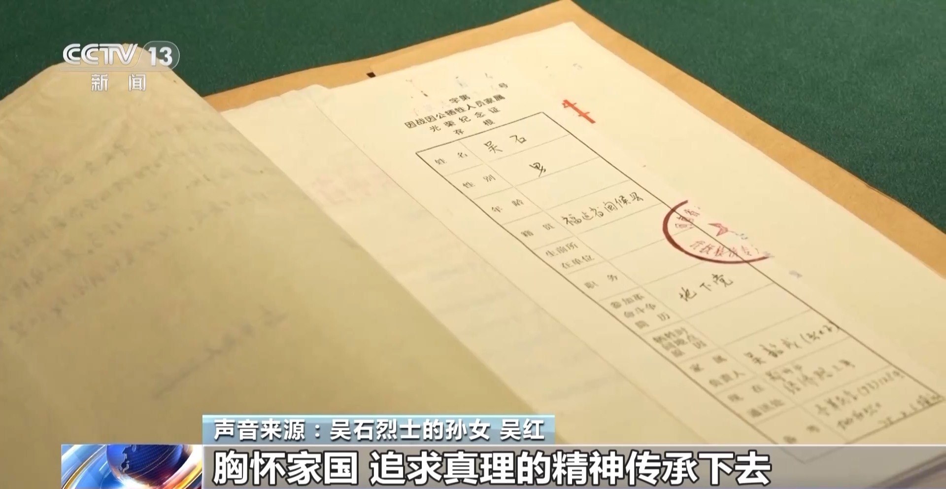 吳石烈士的孫女 吳紅:大家都很敬仰這些先烈們,他們生前留下了這些寶貴資料,我們慢慢地能對這些先烈們了解更多。傳承這段歷史,讓爺爺和先輩們,包括所有的先烈們的胸懷家國、追求真理的精神傳承下去。