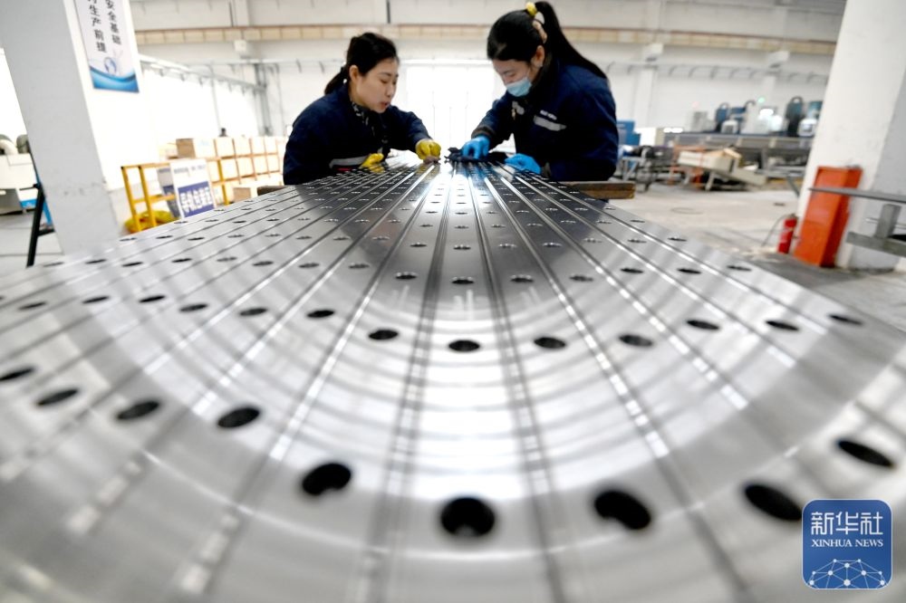 ↑ 12月15日,在位于江蘇省南通市通州區(qū)興仁鎮(zhèn)的江蘇富松模具科技有限公司車間內(nèi),工人趕制模具產(chǎn)品訂單。新華社發(fā)(翟慧勇攝)