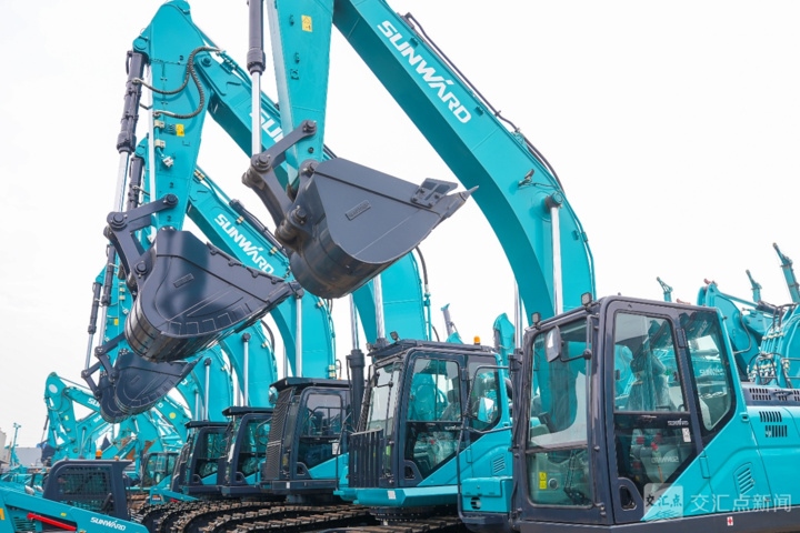 身披“山河綠”的工程機械設(shè)備