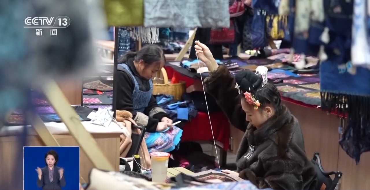 在貴州黔東南苗族侗族自治州凱里市,有一處名為“繡里淘”的非遺大集。新年臨近,當?shù)厥止に嚾藗儙е宅槤M目的非遺作品匯聚于此,也吸引了不少游客前來。