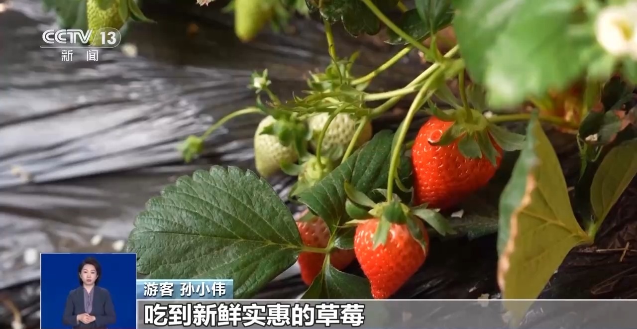 游客 孫小偉:孩子喜歡吃草莓,我們就帶著孩子來采摘,既能帶孩子出來玩,體驗采摘樂趣,又能在家門口吃到實惠新鮮的水果,的確是個好地方。