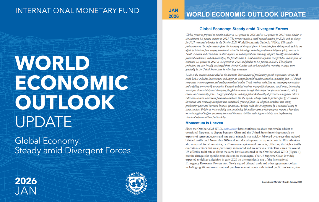 1月19日,國(guó)際貨幣基金組織(IMF)發(fā)布了2026年第一期《世界經(jīng)濟(jì)展望》報(bào)告(以下簡(jiǎn)稱(chēng)報(bào)告)。