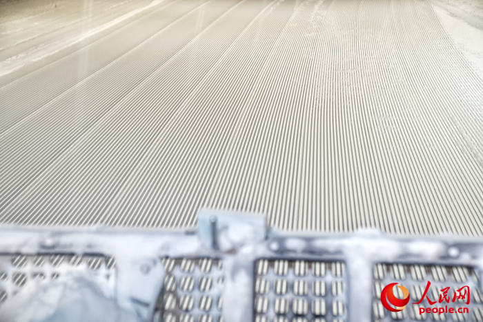 壓雪機刻出的“面條雪”。人民網(wǎng)記者李洋攝