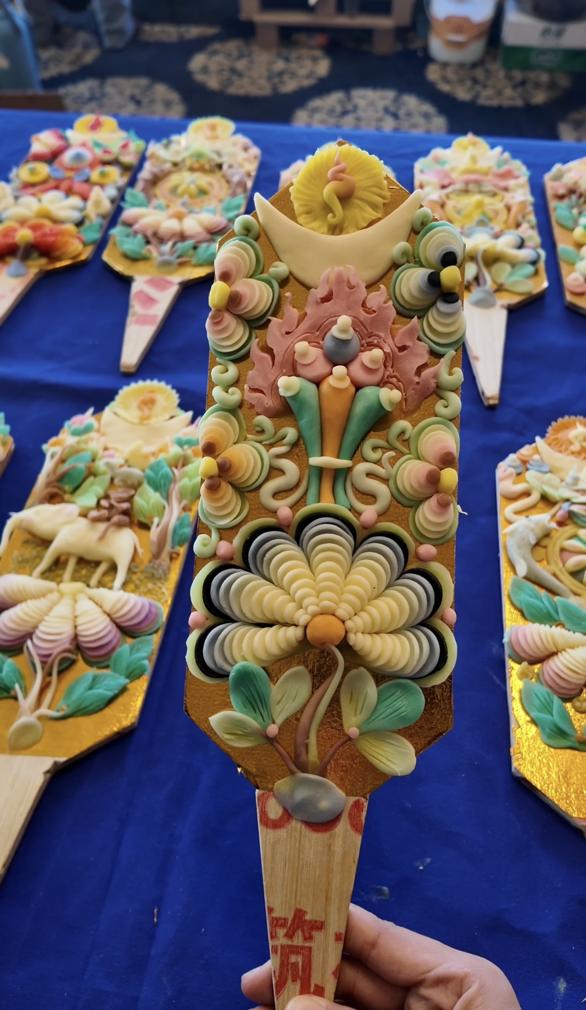 倫珠指著作品解釋,常見題材既有象征和諧共處的“和睦四瑞”,也有寓意吉祥的“八吉祥徽”。有的款式相對(duì)簡(jiǎn)潔,有的極為繁復(fù)、層疊堆彩。如花瓣纖毫畢現(xiàn)的蓮花等款式,其制作耗時(shí)往往是普通款的5到7倍以上。