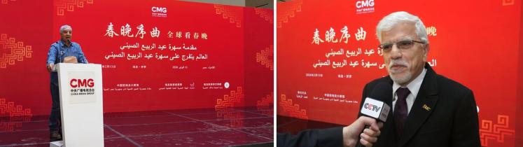 當(dāng)?shù)貢r間2月13日,“春晚序曲 全球看春晚”埃及專場活動在開羅舉行。本次活動由中國中央廣播電視總臺與中國駐埃及大使館、埃及旅游和文物部、埃及旅游促進局共同主辦。中宣部副部長、中央廣播電視總臺臺長慎海雄作視頻致辭。中國駐埃及大使兼駐阿盟全權(quán)代表廖力強,埃及政府代表、埃及外交部亞洲事務(wù)部助哈姆扎,埃及前總理沙拉夫出席活動并致辭。埃及考古學(xué)家、前文物部長哈瓦斯,埃及旅游促進局主席代拉提芙,埃及外交事務(wù)委員會執(zhí)行主任伊扎特,巴德爾大學(xué)副校長巴斯歐尼,阿盟非洲事務(wù)司司長布斯坦吉,阿盟理事會秘書處主任法赫米等中埃兩國政界、學(xué)術(shù)界、媒體界代表200余名嘉賓參加活動。