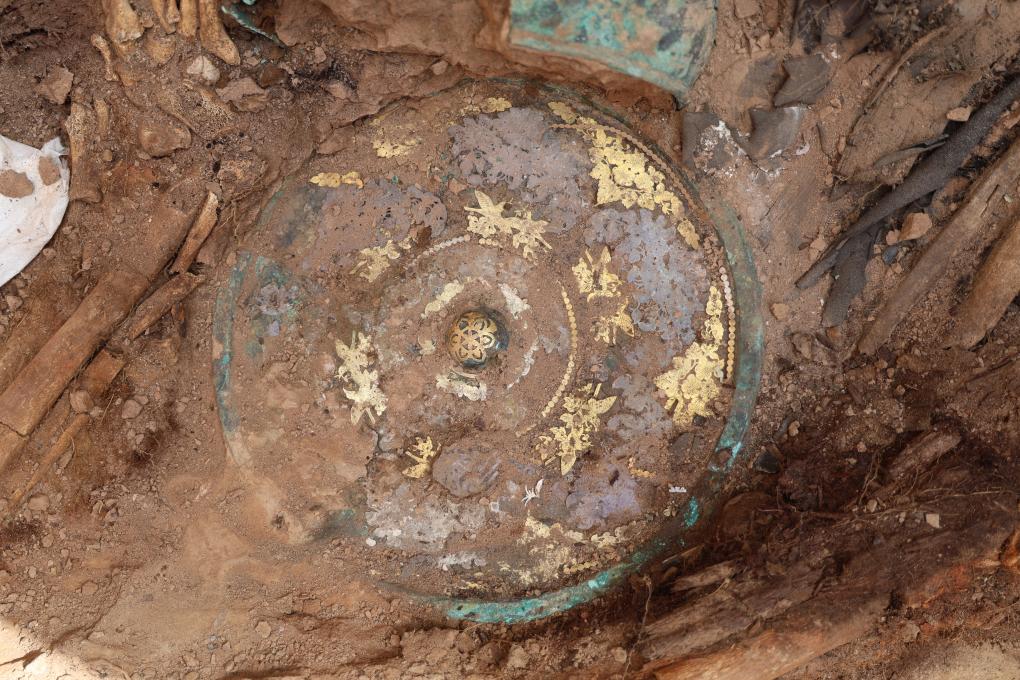 這是吐魯番市巴達木東晉唐時期墓群出土的金銀平脫花鳥紋銅鏡(資料照片)。新華社 發(fā)