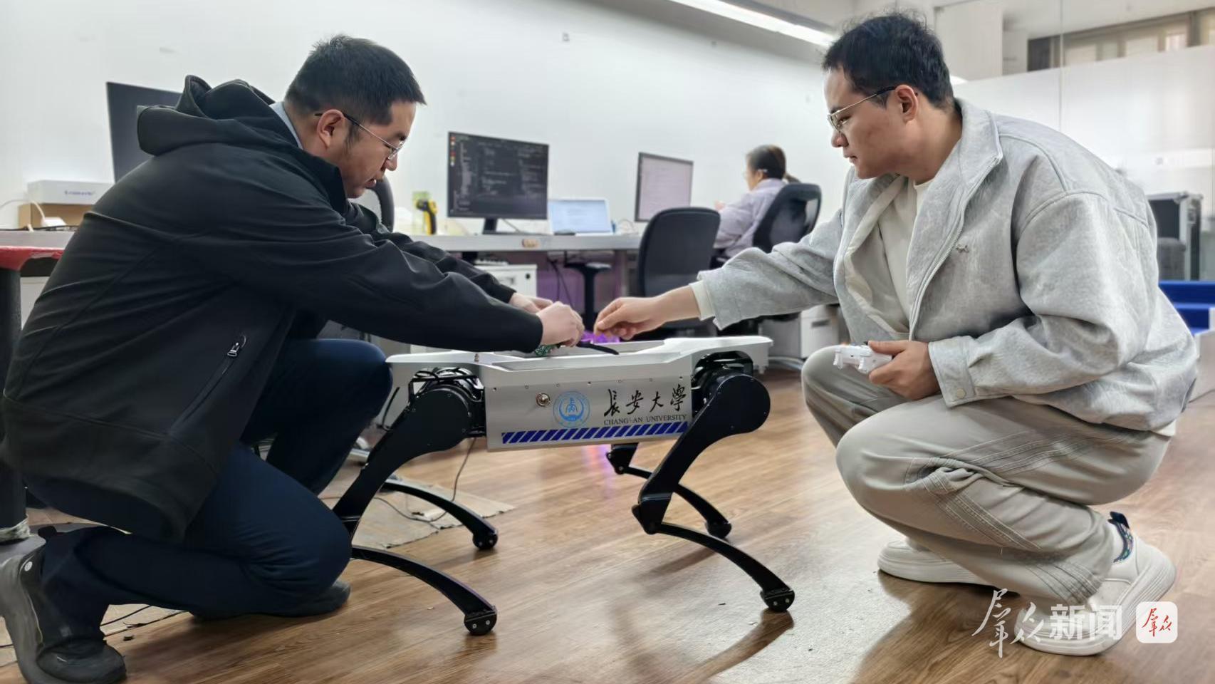 3月2日,西安云合智能機(jī)器人有限公司里,技術(shù)人員在優(yōu)化調(diào)試防爆四足巡檢機(jī)器人。這家由長安大學(xué)科研團(tuán)隊(duì)創(chuàng)辦的企業(yè),正在準(zhǔn)備新款產(chǎn)品的發(fā)布。