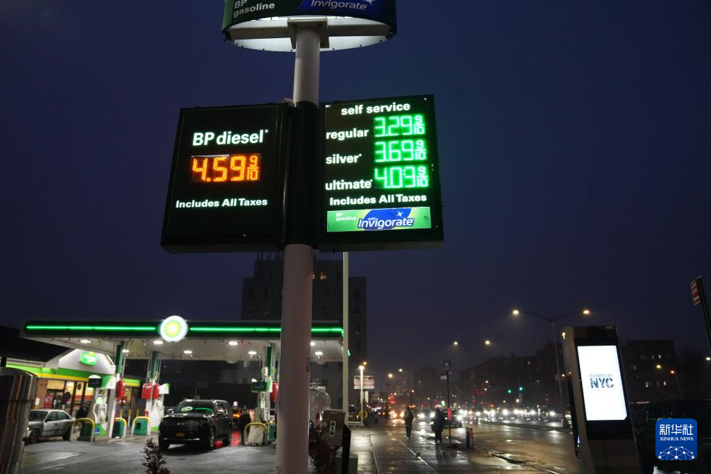 這是3月5日在美國(guó)紐約一座加油站拍攝的油價(jià)顯示屏。新華社記者 張鳳國(guó) 攝