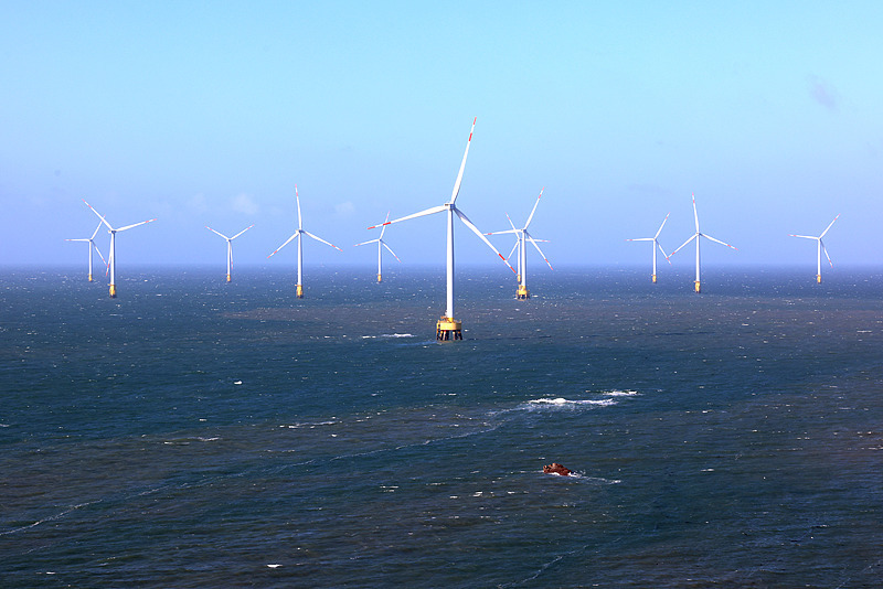 福建海上風(fēng)力發(fā)電機(jī)迎風(fēng)轉(zhuǎn)動(dòng)