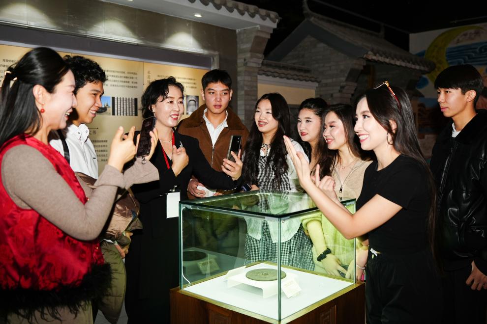 2025年11月28日,在新疆中哈霍爾果斯國(guó)際邊境合作中心中國(guó)文化館,來(lái)自哈薩克斯坦的青年參觀中國(guó)歷史文化展。新華社記者 徐宏巖 攝