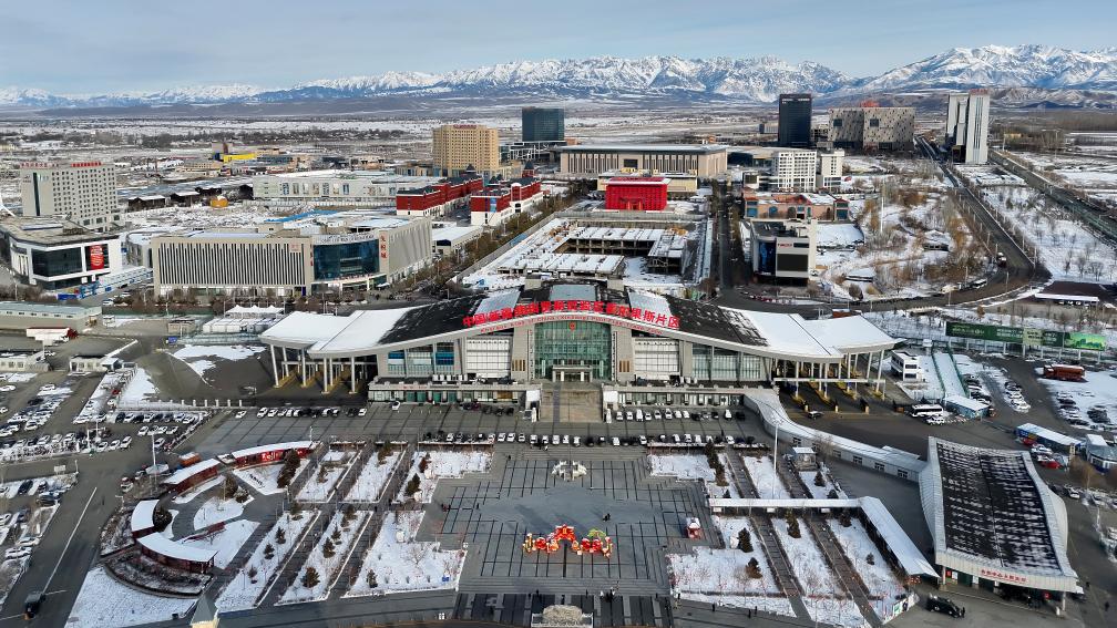 這是2026年2月9日拍攝中國(guó)(新疆)自由貿(mào)易試驗(yàn)區(qū)霍爾果斯片區(qū)(無(wú)人機(jī)照片)。新華社記者 張嘯誠(chéng) 攝