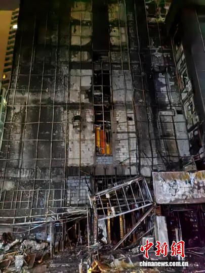 圖為大面積過火后的建筑東側(cè)樓體外墻。 陸祁國 攝