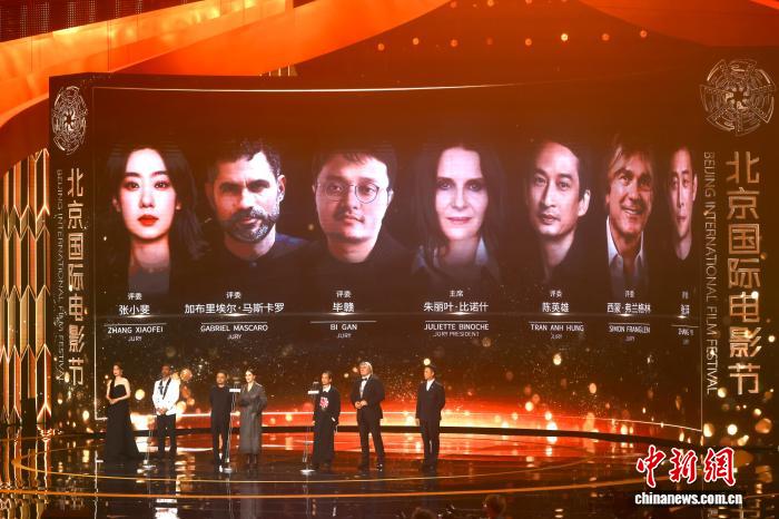 4月16日,第十六屆北京國(guó)際電影節(jié)開幕。圖為本屆北影節(jié)“天壇獎(jiǎng)”國(guó)際評(píng)獎(jiǎng)委員會(huì)亮相開幕式現(xiàn)場(chǎng)。中新社記者 易海菲 攝