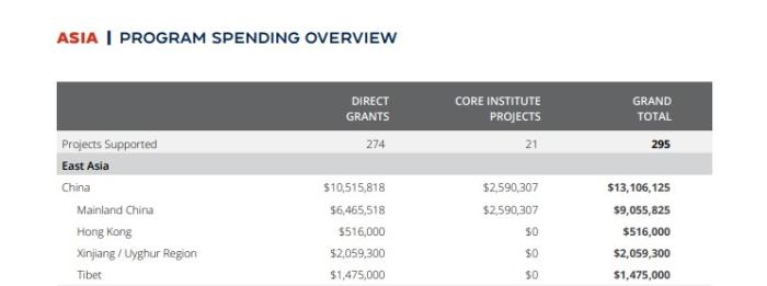 NED在亞洲的投入總額超過(guò)5300萬(wàn)美元。其中,針對(duì)中國(guó)的相關(guān)項(xiàng)目金額達(dá)到1300萬(wàn)美元,位居全球第一。砸這么多錢(qián),在中國(guó)干了什么?