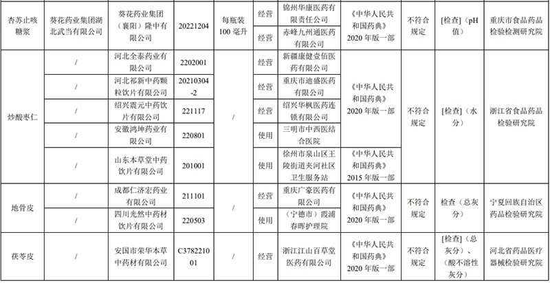 經(jīng)寧夏回族自治區(qū)藥品檢驗研究院檢驗,標示為成都仁濟宏藥業(yè)有限公司、四川光然中藥材飲片有限公司生產(chǎn)的2批次地骨皮不符合規(guī)定,不符合規(guī)定項目為總灰分。