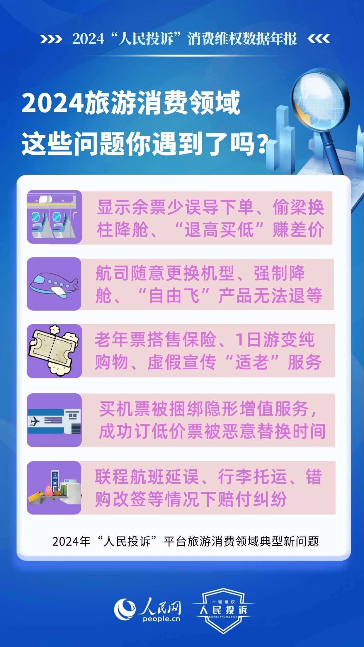 2024年,旅游消費持續(xù)火爆,以舊換新“換”出消費新活力,直播電商“品質化”轉型,新能源汽車購銷兩旺……在消費市場熱力持續(xù)提升的背景下,旅游產(chǎn)品退訂難,電商促銷虛假價保,直播間營銷違規(guī),車險車貸服務欺詐,AI培訓貨不對板等消費侵權問題引發(fā)廣泛關注。“人民投訴”發(fā)布年報帶您回顧這一年來,平臺消費維權熱點和入駐企業(yè)積極處理糾紛的舉措。
