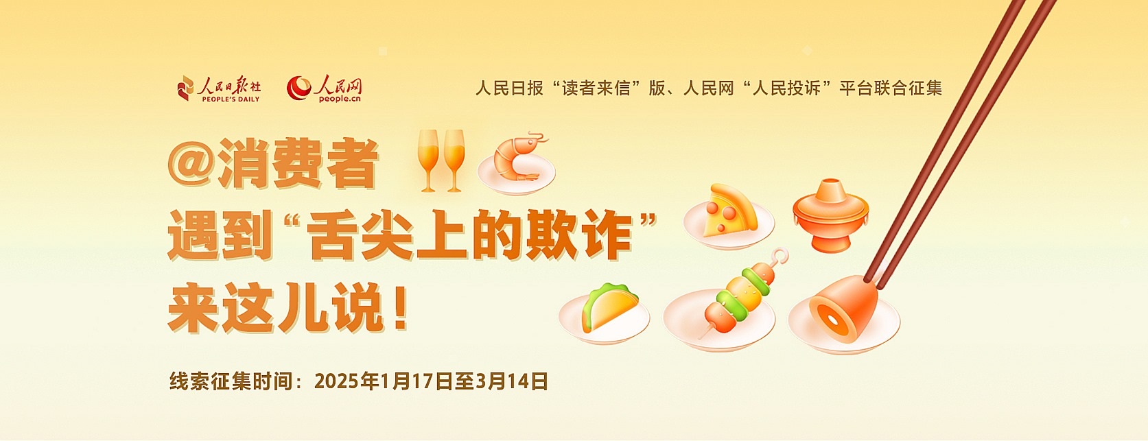 牛肉干里不含牛肉,無糖產(chǎn)品其實(shí)含糖,配料表造假、營養(yǎng)成分表不準(zhǔn)確……你遇到過嗎?“以假亂真”“以次充好”為代表的食品欺詐,嚴(yán)重?fù)p害消費(fèi)者利益,擾亂市場公平競爭秩序。為筑牢食品安全防線,增強(qiáng)消費(fèi)者信心,即日起,人民日報“讀者來信”版與人民網(wǎng)“人民投訴”平臺聯(lián)合發(fā)起相關(guān)線索征集,歡迎您掃描上方海報二維碼進(jìn)入征集頁面留言或提供調(diào)查線索至人民日報“讀者來信”版(郵箱:dzlx@peopledaily.cn 傳真:010-65368495)。線索征集時間截至2025年3月14日。