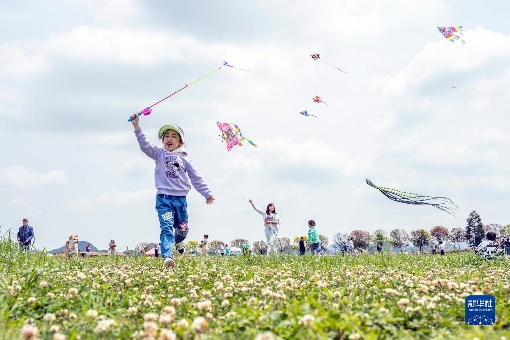 江蘇省淮安市,小朋友在步道廣場玩耍。 趙啟瑞攝(人民視覺)