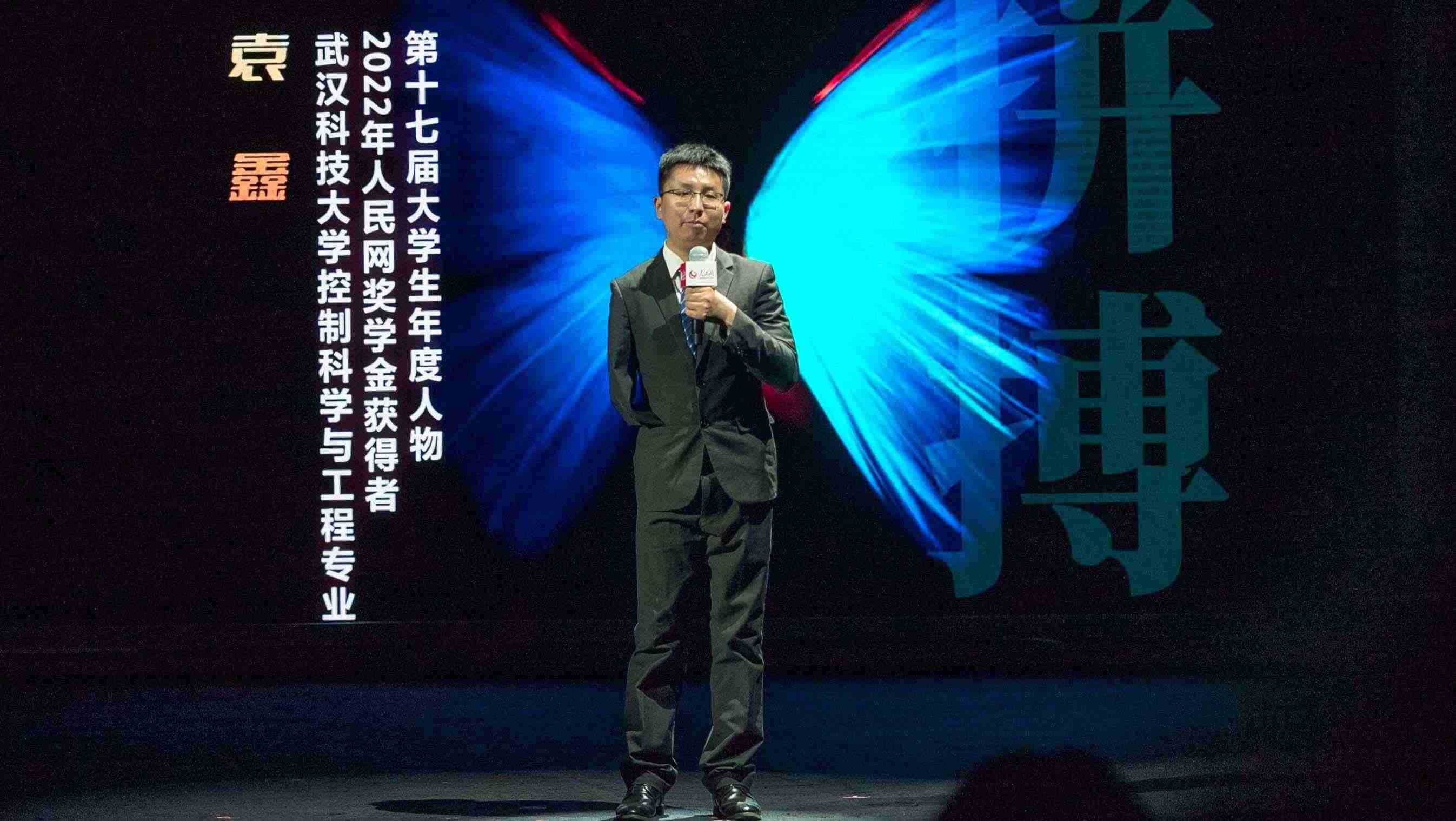 第十七屆大學(xué)生年度人物、2022年度人民網(wǎng)獎(jiǎng)學(xué)金一等獎(jiǎng)獲得者武漢科技大學(xué)控制科學(xué)與工程專業(yè)博士生袁鑫分享自己的故事。實(shí)習(xí)生韓華良 攝