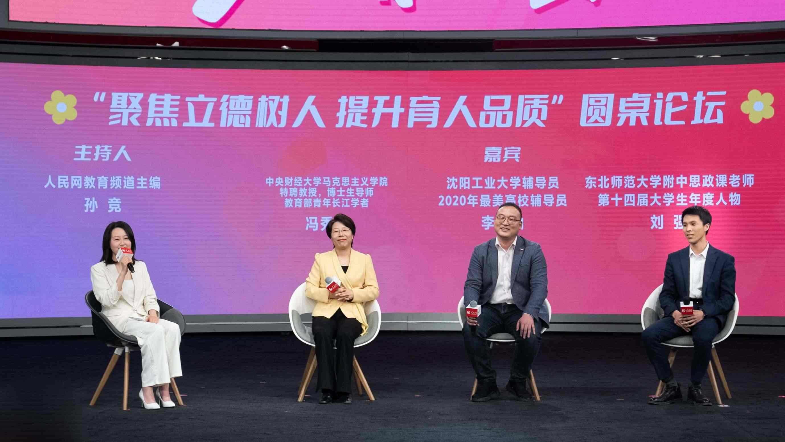 在“聚焦立德樹人,提升育人品質(zhì)”思政圓桌環(huán)節(jié)上,人民網(wǎng)教育頻道主編孫競(jìng)與多位教育一線思政老師展開對(duì)話。中央財(cái)經(jīng)大學(xué)馬克思主義學(xué)院特聘教授、博士生導(dǎo)師、教育部青年長(zhǎng)江學(xué)者馮秀軍表示,“一百多年前那個(gè)時(shí)代的青年,用青春和熱血為我們打造出了今天這樣一個(gè)中國青年可以平視世界的新天地。我們這片熱土,蘊(yùn)含了無限的力量和希望,希望同學(xué)們投身實(shí)踐,尋找到我們的使命,從而獲得青春奮進(jìn)的力量。”