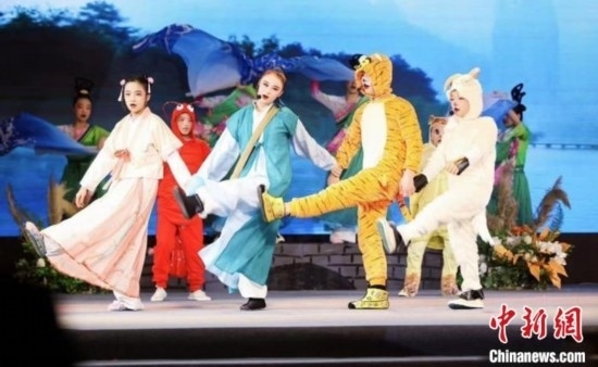 原創(chuàng)童話婺劇折子戲《游禮過(guò)橋》首演現(xiàn)場(chǎng)。江帆 攝