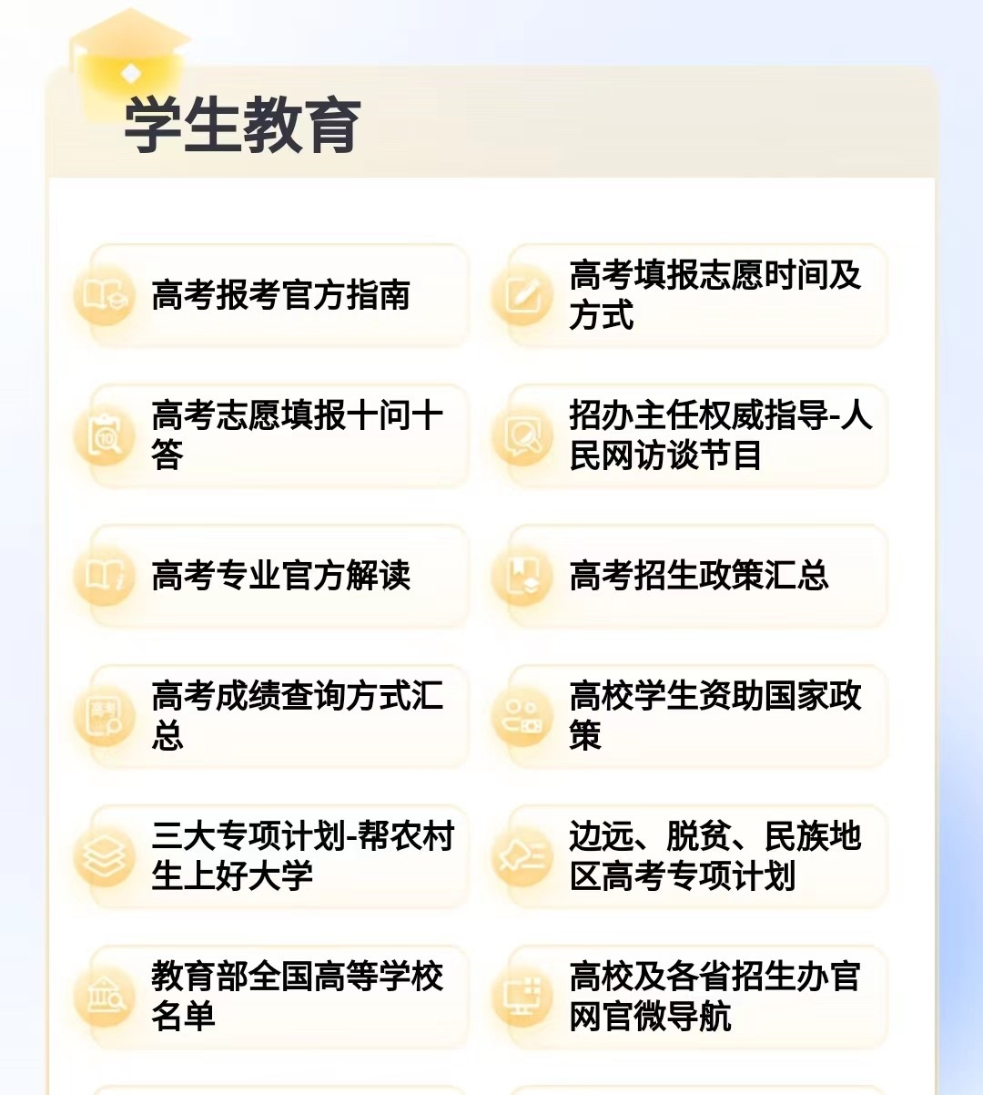 聚焦于高考生群體,“人民網(wǎng)+”客戶端便民服務匯總小程序聚合多項實用資訊,為考生及家長提供權(quán)威、便捷的服務: