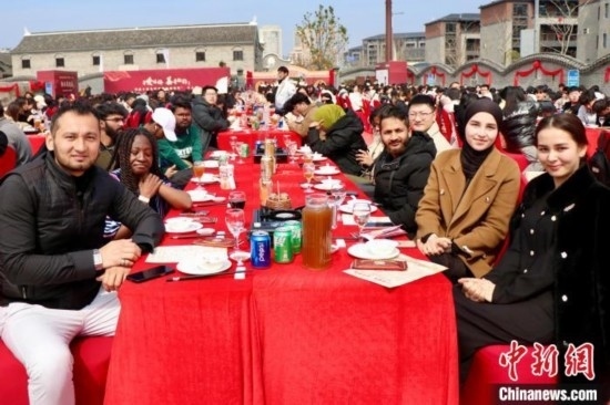 外國留學生體驗“路橋區(qū)首屆‘辣呵呵’千人宴”。阮雅妮 攝