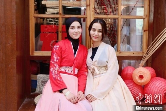 外國留學生體驗漢服。阮雅妮 攝
