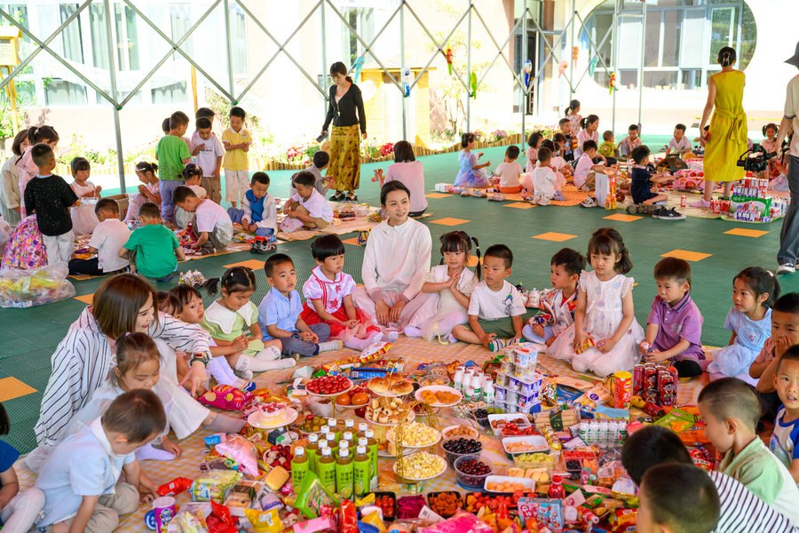北疆新聞呼和浩特5月28日電(記者 楊凈毓 林則志攝影)水果、蛋糕、糖果、酸奶……零食多的數(shù)不過來,比小朋友還多。