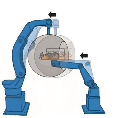 為了破解動物在完全黑暗的管道、隧道中也能迅速轉(zhuǎn)彎、穿越障礙,并準(zhǔn)確地抵達(dá)目的地的秘密,科學(xué)家們設(shè)計了一種獨特的運動模擬器。該模擬器采用同步的工業(yè)機(jī)械臂來模擬不同的運動狀態(tài)。實驗中,老鼠被放在模擬器中接受各種運動刺激,儀器同時報告它們感知到的運動方向。結(jié)果顯示,老鼠對極其微小的氣流變化都異常敏感,它們確實能夠利用這種氣流信息,增強自身對運動的感知和判斷力。