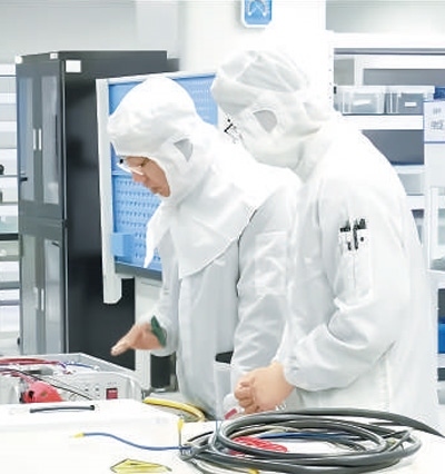 北京工業(yè)大學科研團隊測試半導體激光器。