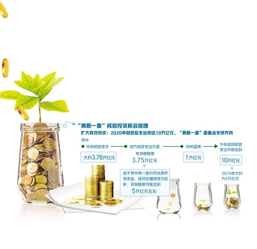 為重點支持既促消費惠民生又調(diào)結(jié)構(gòu)增后勁的“兩新一重”建設(shè),根據(jù)《政府工作報告》,今年特別安排地方政府專項債券3.75萬億元,比2019年有所增加;另有抗疫特別國債1萬億元,資金用途共涉及6個領(lǐng)域,其中有部分也指向“兩新一重”建設(shè)領(lǐng)域。