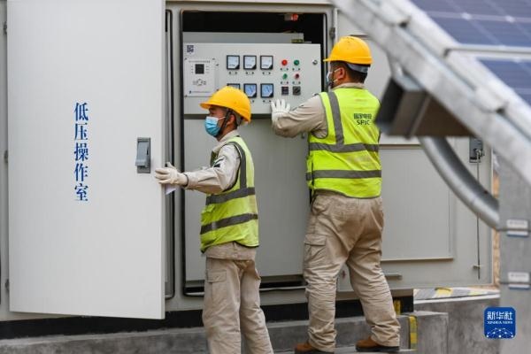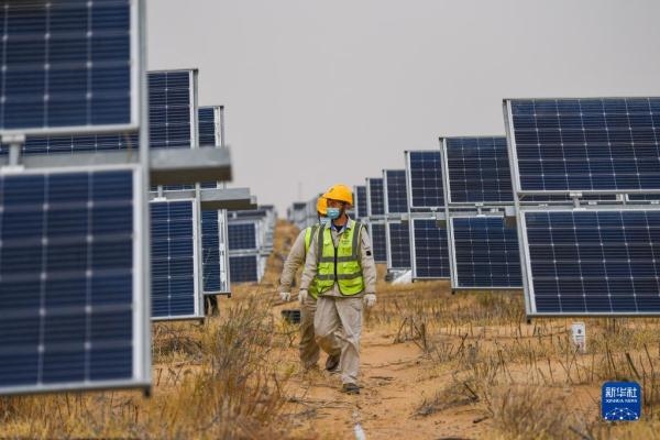 4月20日,工作人員在達拉特光伏發(fā)電應(yīng)用領(lǐng)跑基地巡檢。新華社記者 王澤聰 攝