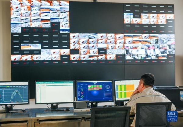 4月20日,在達拉特光伏發(fā)電應(yīng)用領(lǐng)跑基地,工作人員在運維中心主控室工作。新華社記者 王澤聰 攝