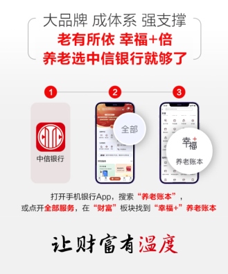 面對萬億規(guī)模個人養(yǎng)老金新藍海,銀行、基金、保險等各類型金融機構,正加速布局。作為國內(nèi)最早推出年長客戶專屬服務的商業(yè)銀行,中信銀行始終關注并積極落實“應對人口老齡化”的國家戰(zhàn)略,打造了包含“一個賬戶、一套產(chǎn)品、一個賬本、一套服務、一支隊伍、一份報告”六大支撐的養(yǎng)老金融服務體系,并推出“幸福+”養(yǎng)老賬本一站式養(yǎng)老金融服務平臺,以實際行動響應國家號召、履行社會責任、助力第三支柱個人養(yǎng)老金制度實施落地。