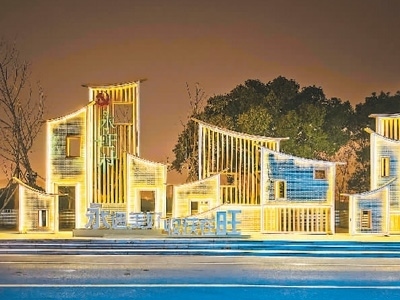 2022年12月28日,獲批全省“未來(lái)鄉(xiāng)村”稱(chēng)號(hào)的浙江省寧波市鎮(zhèn)海區(qū)永旺村燈光璀璨。胡學(xué)軍攝(人民圖片)