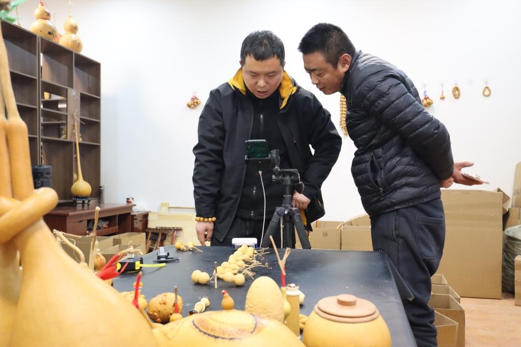 村民在直播賣葫蘆。新華社記者 張力元 攝