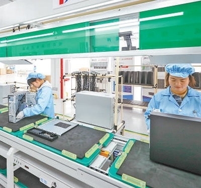 工人在畢節(jié)一家計算機生產(chǎn)企業(yè)產(chǎn)線上組裝產(chǎn)品。陳 曦攝(人民視覺)
