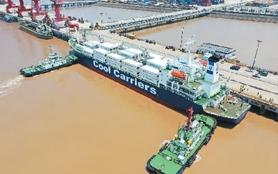 去年以來,浙江省玉環(huán)市持續(xù)加強對港口企業(yè)的引導力度,拓展大麥嶼港與東南亞國家、RCEP國家的合作。圖為一艘滿載6245噸新季獼猴桃的新西蘭貨輪停泊在大麥嶼港集裝箱碼頭,該航線是大麥嶼港于去年成功開通的RCEP國家水果進口航線,實現(xiàn)了入境水果業(yè)務零的突破。段俊利攝(人民視覺)