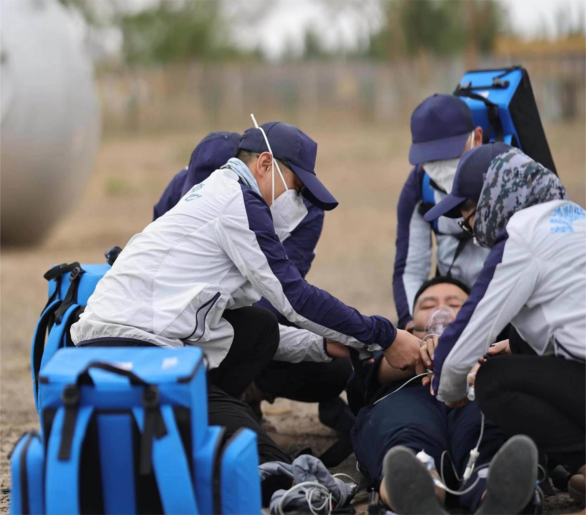 航天員在軌時(shí)間長(zhǎng),著陸場(chǎng)地質(zhì)條件復(fù)雜,這一系列情況導(dǎo)致傷情出現(xiàn)概率增加,醫(yī)療救護(hù)困難加大,必須苦練醫(yī)療救護(hù)技能,及時(shí)到達(dá)、迅速診斷、有效處置。