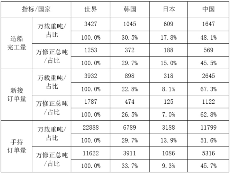 具體來(lái)看,1-5月,全國(guó)造船完工1647萬(wàn)載重噸,同比增長(zhǎng)15.4%。承接新船訂單2645萬(wàn)載重噸,同比增長(zhǎng)49.5%。5月底,手持船舶訂單11799萬(wàn)載重噸,同比增長(zhǎng)15.5%。全國(guó)完工出口船1402萬(wàn)載重噸,同比增長(zhǎng)13.8%;承接出口船訂單2415萬(wàn)載重噸,同比增長(zhǎng)52.5%;5月末手持出口船訂單10831萬(wàn)載重噸,同比增長(zhǎng)19.9%。出口船舶分別占全國(guó)造船完工量、新接訂單量、手持訂單量的85.1%、91.3%和91.8%。