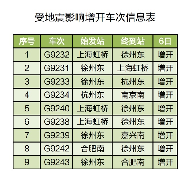 后續(xù),鐵路部門將密切關(guān)注地震影響區(qū)段高鐵恢復運行和旅客出行需要等情況,適時采取停運、加開、恢復開行等措施,動態(tài)調(diào)整列車開行方案,確保旅客安全出行需要。具體列車開行信息請關(guān)注車站公告或致電鐵路12306客服熱線查詢,以便妥善安排行程。