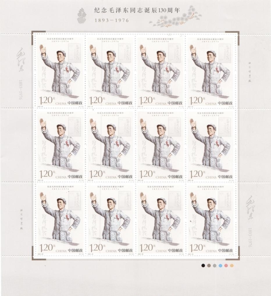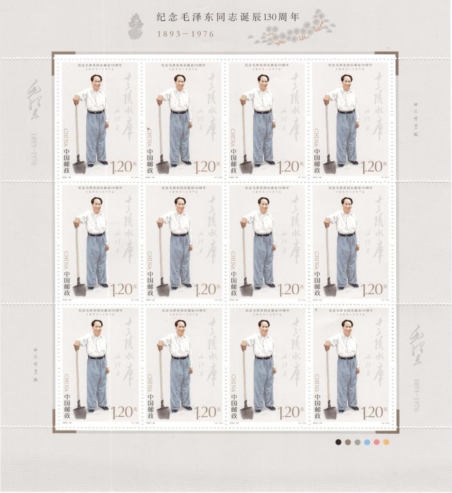 新華社北京12月25日電 中國郵政定于12月26日發(fā)行《紀(jì)念毛澤東同志誕辰130周年》紀(jì)念郵票1套4枚,郵票圖案名稱分別為堅(jiān)持抗戰(zhàn)、建設(shè)十三陵水庫、胸懷天下、重上井岡山。