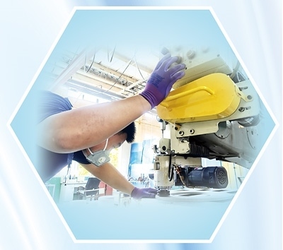萬基萬公司砂輪生產部工作人員正在檢測砂輪硬度。金成勛攝