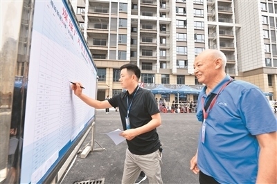 近年來,湖北省襄陽市??悼h持續(xù)改善城市人居環(huán)境、提升城市功能與品位,讓群眾住有所居、安居宜居的夢想不斷成為美好現(xiàn)實(shí)。圖為??悼h新型城鎮(zhèn)化項(xiàng)目國投·梅嶺新居小區(qū)開展分房選房工作時,工作人員在填寫房源分配信息。楊 韜攝(人民視覺)