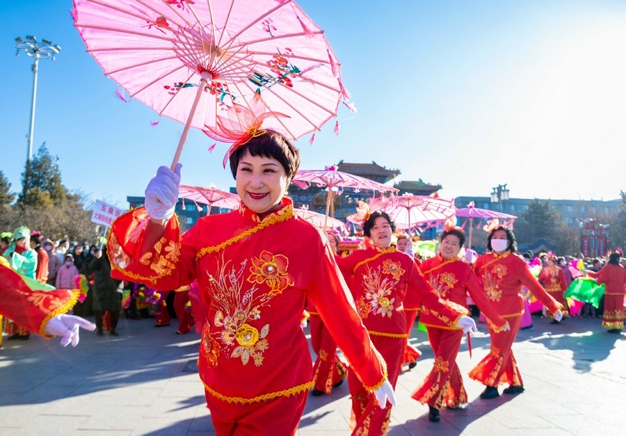 2024年2月15日,演員在呼和浩特新春文化廟會(huì)開幕式上表演。丁根厚 攝