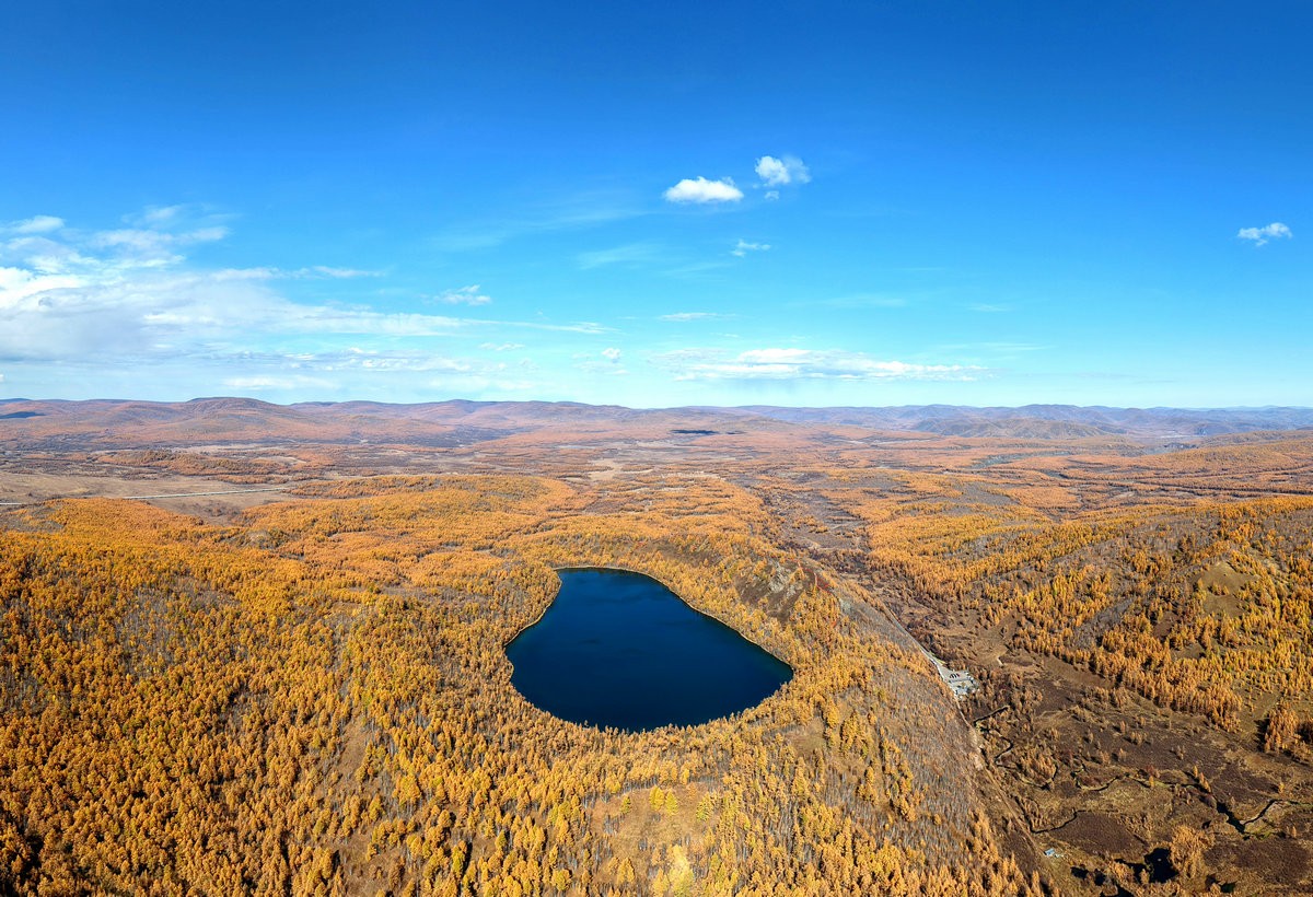 9月29日,空中俯瞰內(nèi)蒙古阿爾山國家森林公園駝峰嶺天池 北疆新聞?dòng)浾?張楊攝影