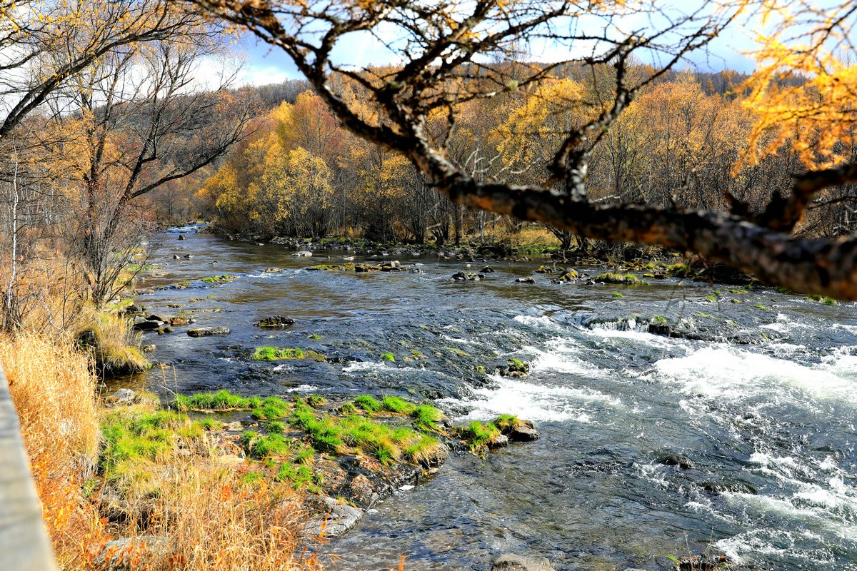 9月29日,游客在內(nèi)蒙古阿爾山國家森林公園不凍河邊小憩 北疆新聞?dòng)浾?張楊攝影